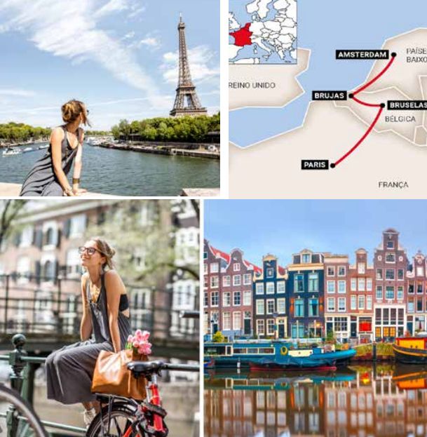 Amsterdã, Antuérpia, Bruges, Gante, Bruxelas, Paris